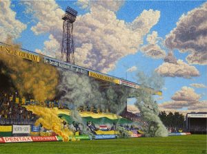 Kunstschilder Daan de Jong (https://daandejong.exto.nl) heeft een historisch schilderij gemaakt van de Noord tribune van het Zuiderpark stadion. Het heet “Ouverture Zuiderpark Forever” (details: olieverf op doek, 60 x 80 cm). In Daan zijn schilderijen spelen wolken een prominente rol, in het schilderij zijn dat vooral ook de rookwolken die van de tribune afstomen…